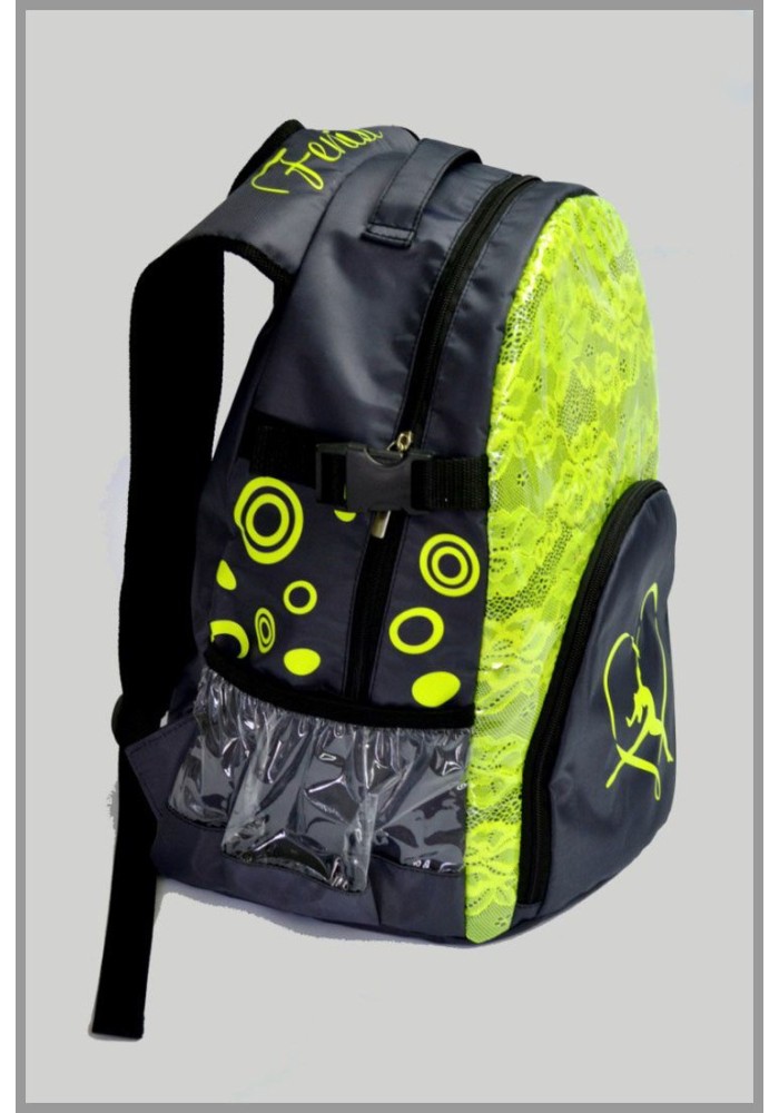 Dance Bag  Bright Back-Pack with a separate pocket for gymnastic ball , pockets on side , Pockets inside.  Dimension :  35cm x 22cm x 40cm Made in Europe , from high quality fabrics....