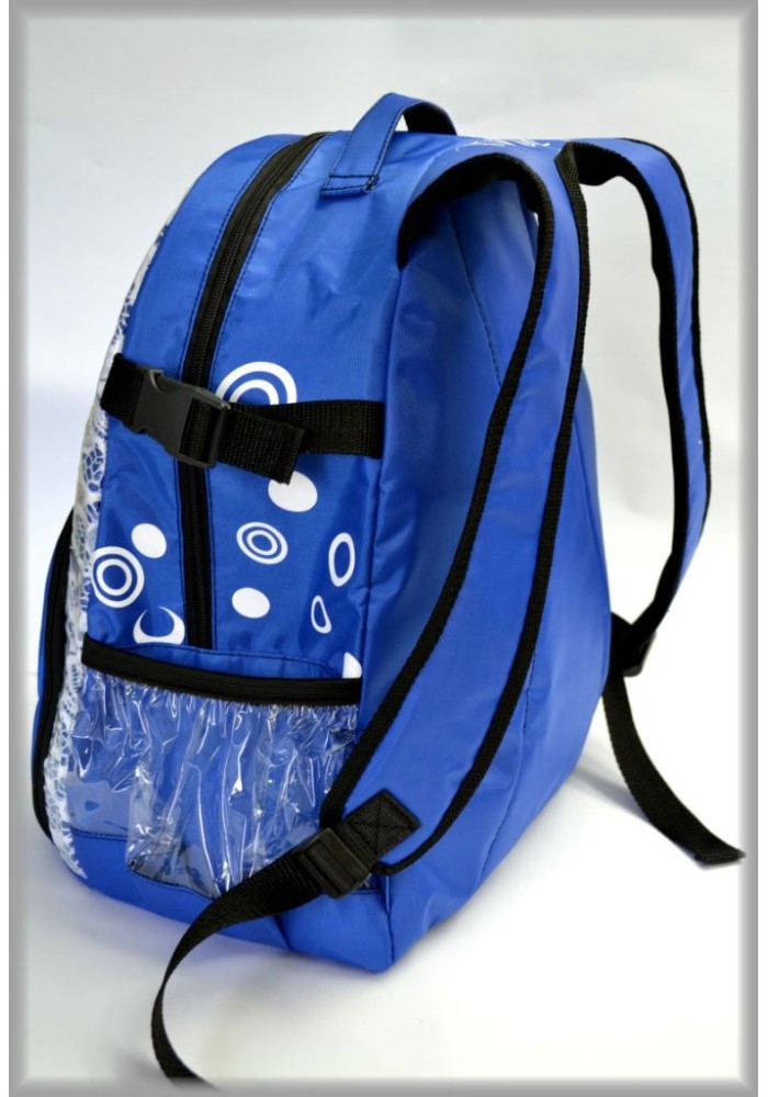 Bright Back-Pack with a separate pocket for gymnastic ball , pockets on side , Pockets inside.