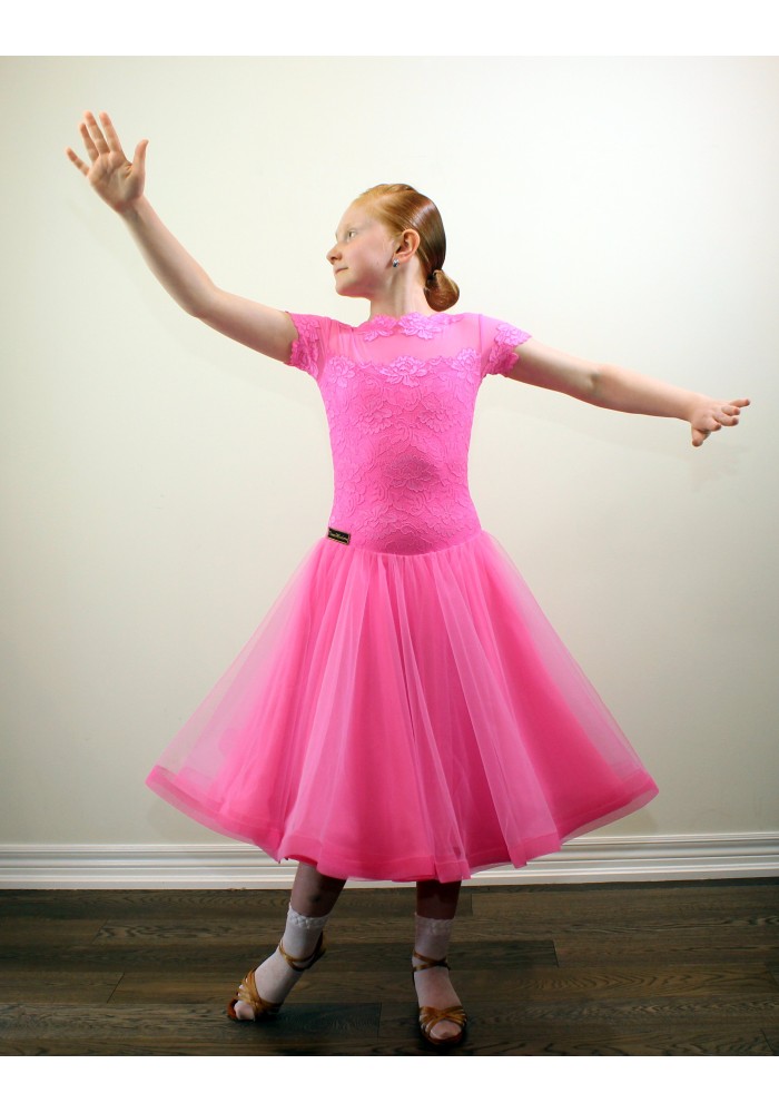Girl's Competition Dress Ballroom competition dress made of Chrisanne (made in England fabric) the skirt is four layers of mesh that allows the dress play beautifully on the dance floor. Top is french lace and mesh. ...
