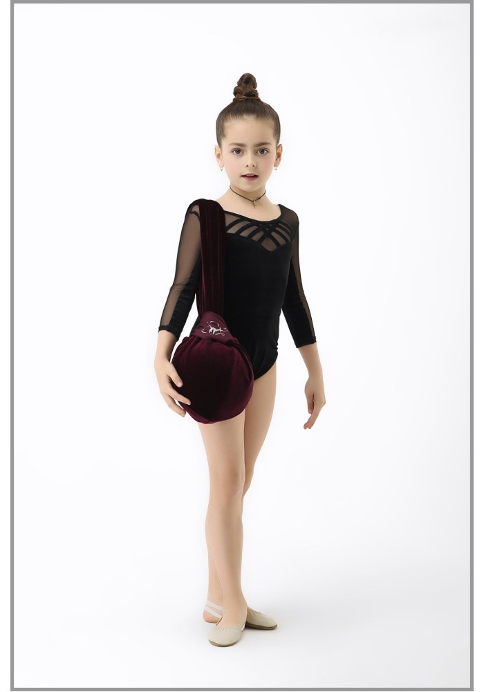 Children's Bodysuit for dancing, choreography, and gymnastics. The Bodysuit is elastic and well-fitting, the neck is round, 3/4 sleeve. Bodysuit made of high-quality materials. The top made of mesh and decorated with elastic ribbons.